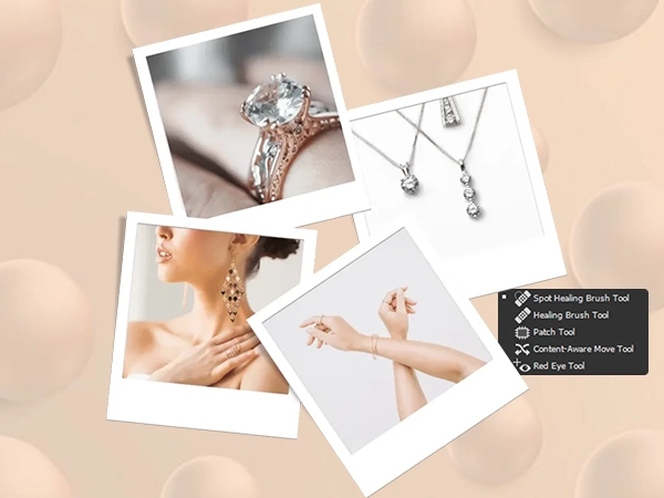 Best For: Removing dust, scratches on the surface, and small flaws on metal or gemstones.It is one of the most utilized tools in jewelry photo retouching. No matter whether you have a light scratch on the jewelry or a stain on a pearl, the Spot Healing Brush Tool will easily remove the defect by examining and mixing the nearby pixels.